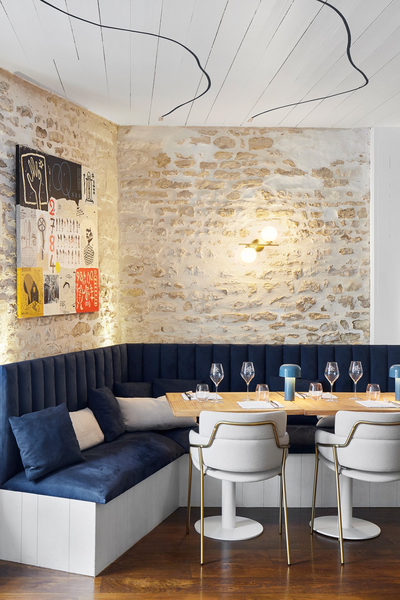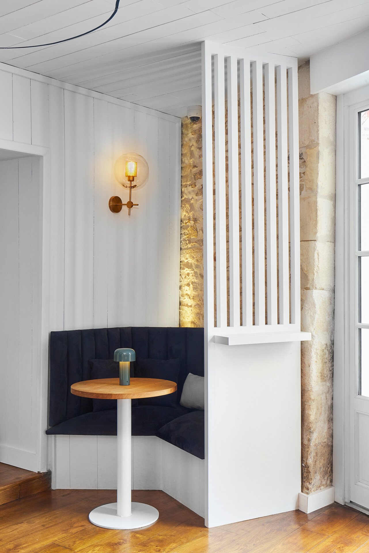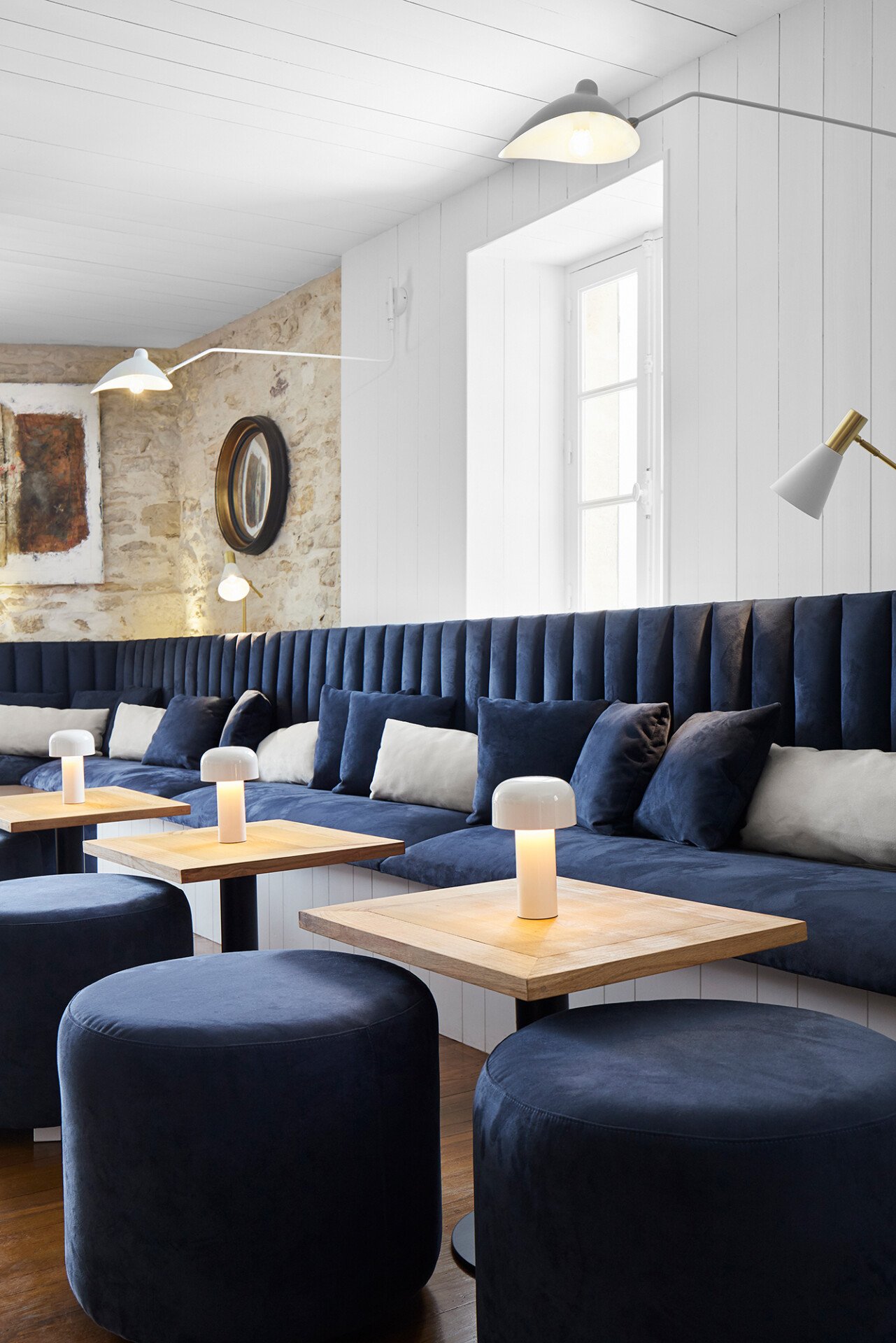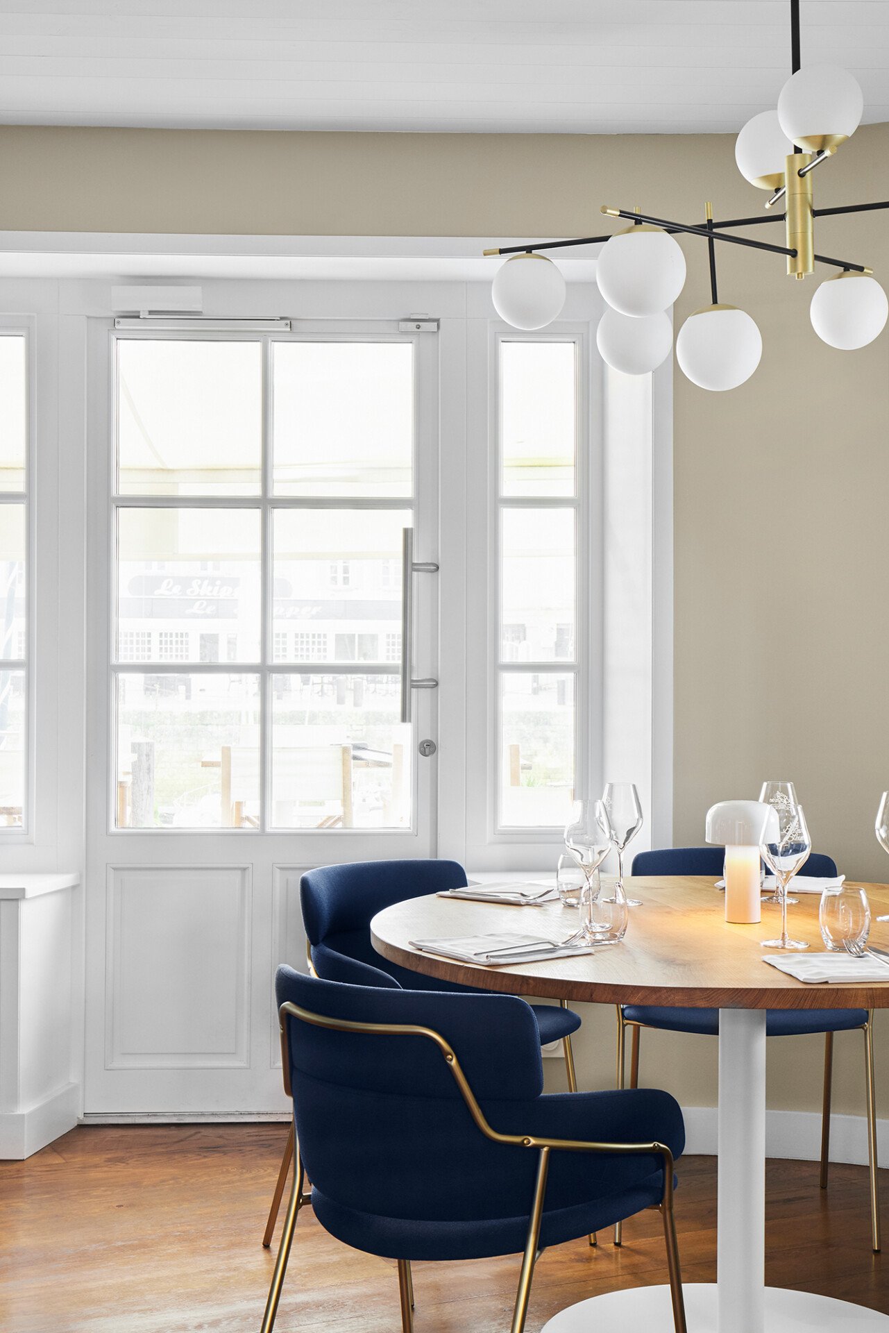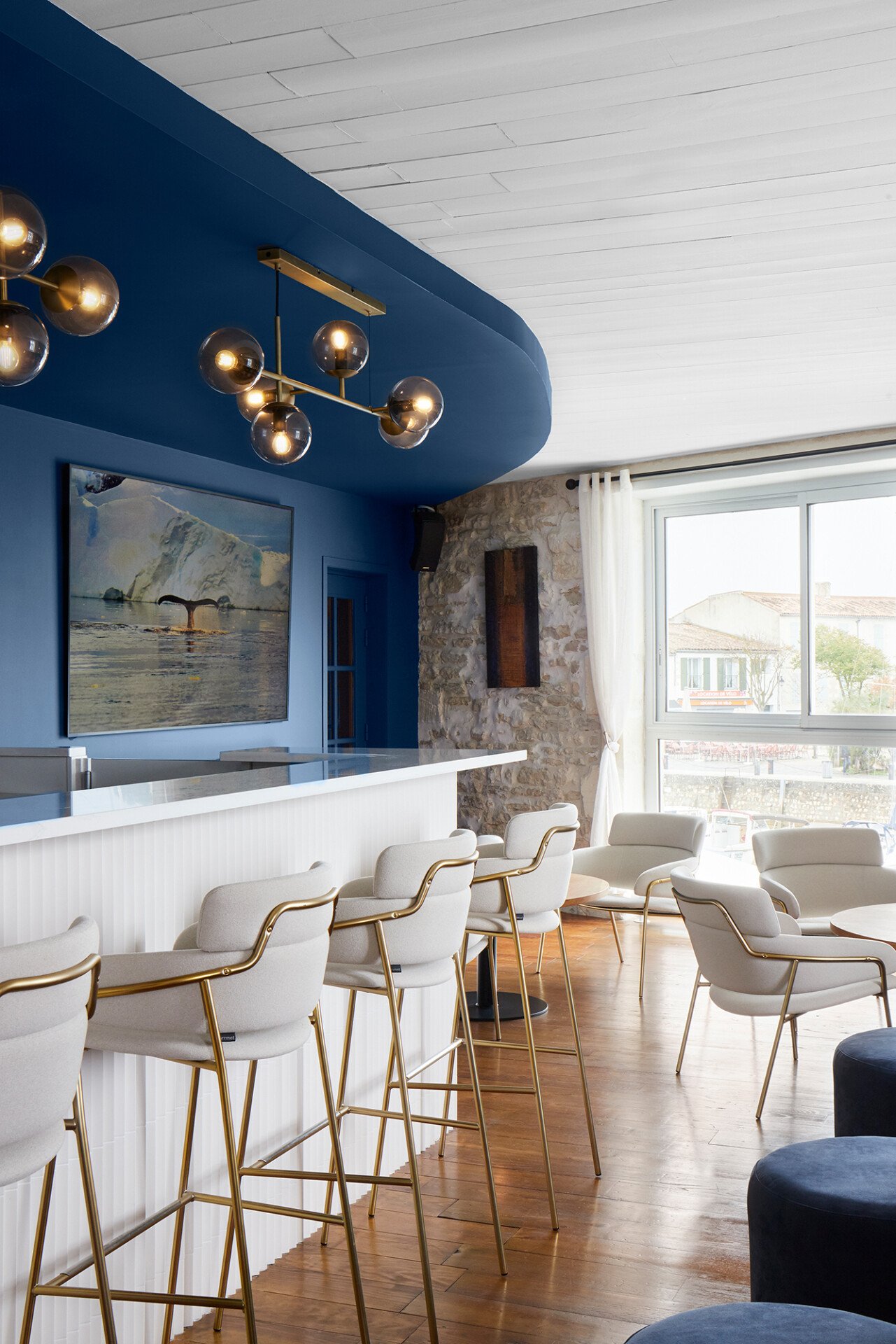For this gastronomic restaurant and institution of Île de Ré, all the spaces have been completely renovated. Inside the establishment, you’ll find yourself immersed in a Marine and Chic atmosphere.