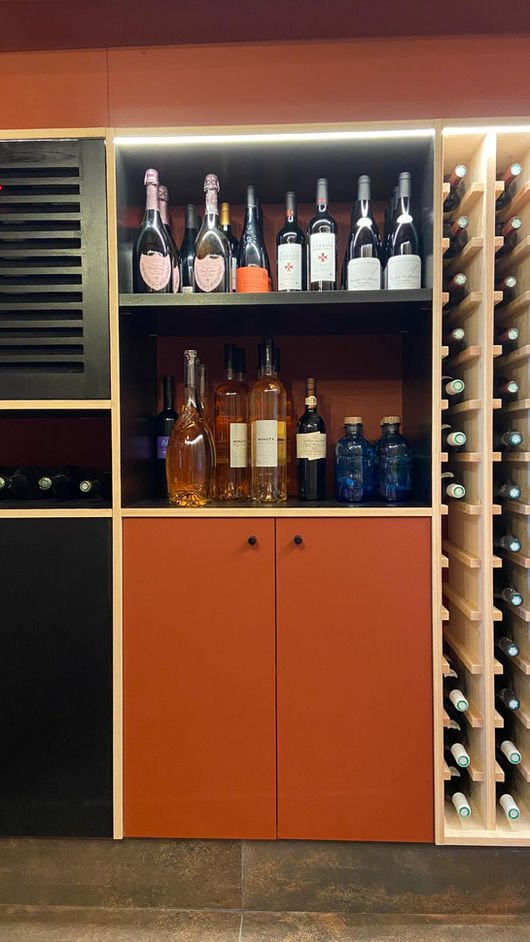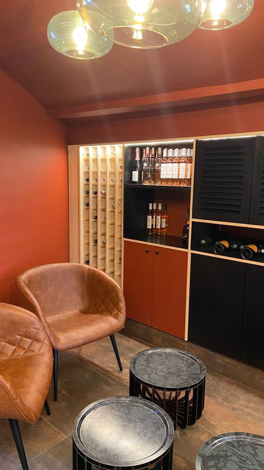 Création d’une cave à vin pour dégustation privative au restaurant La Baleine Bleue à Saint-Martin-de-Ré.