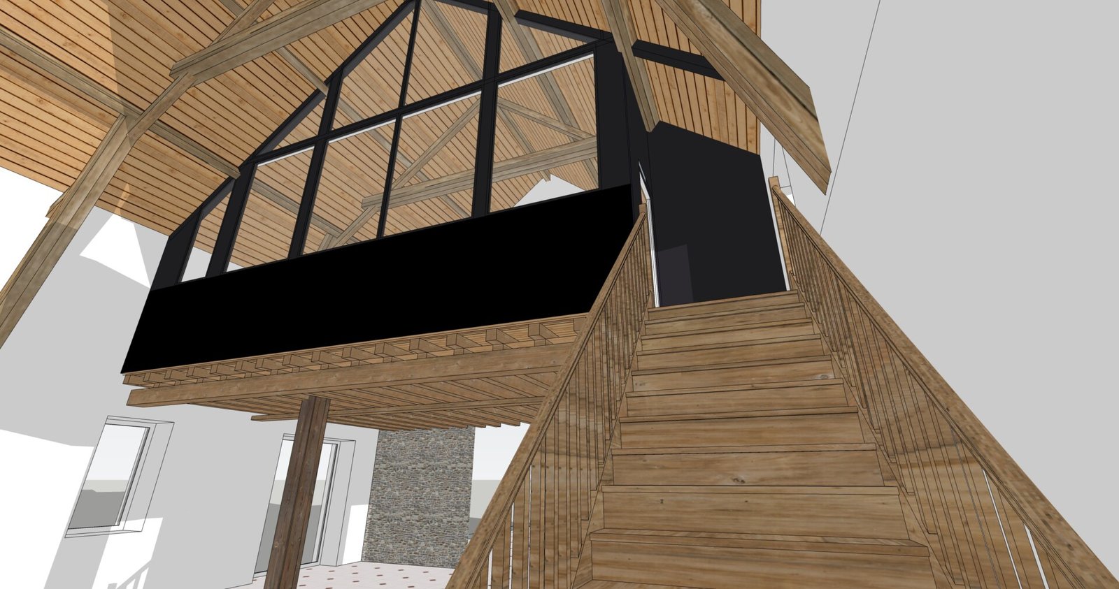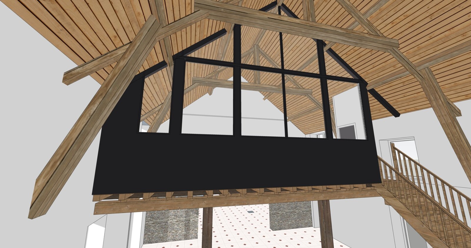 Enfin nous avons conçu une verrière sur-mesure afin de fermer la mezzanine sous charpente, car rarement utilisée. Nous avons pris soin de l’isolation phonique pour y créer un bureau confortable pour l’équipe.